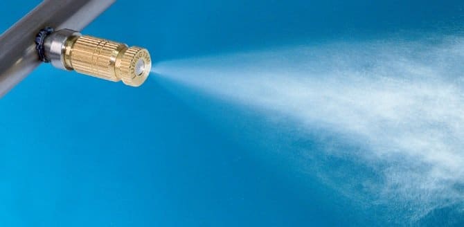 Dysze zamgławiające wykonane są ze stali nierdzewnej co gwarantuje ich długą żywotność i odporność na warunki panujące w budynku inwentarskim. System montowany jest zazwyczaj przy wlotami powietrza, dzięki czemu chłodzenie odbywa się jeszcze przed jego rozprowadzeniem wewnątrz obiektu.